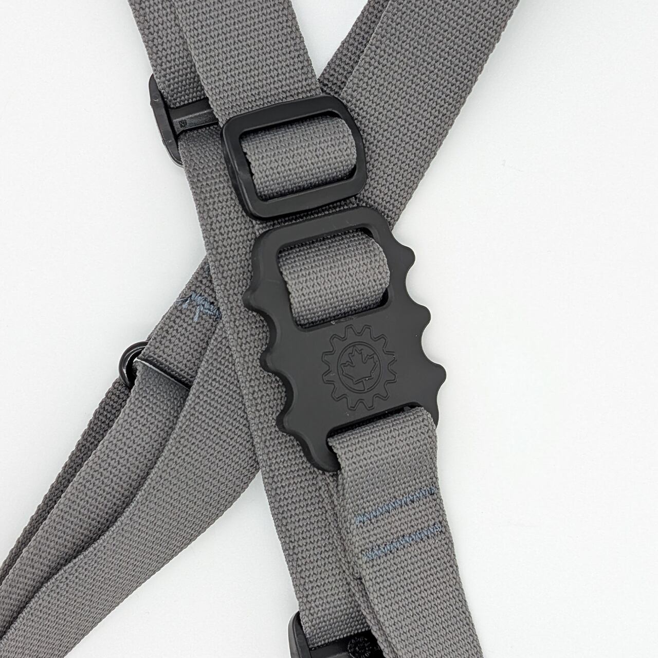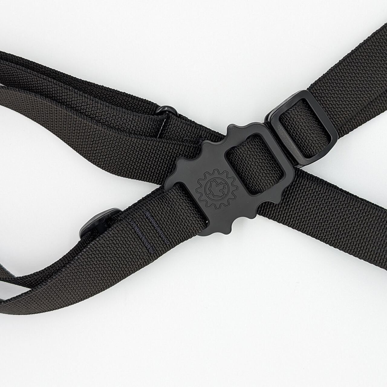 スライダーバックルを、つかんで後ろに引くと長くなり、前に動かすと短くなるシンプルな構造で、瞬時にスリング長を調整することができるため、常に最適な長さで運用することができます。